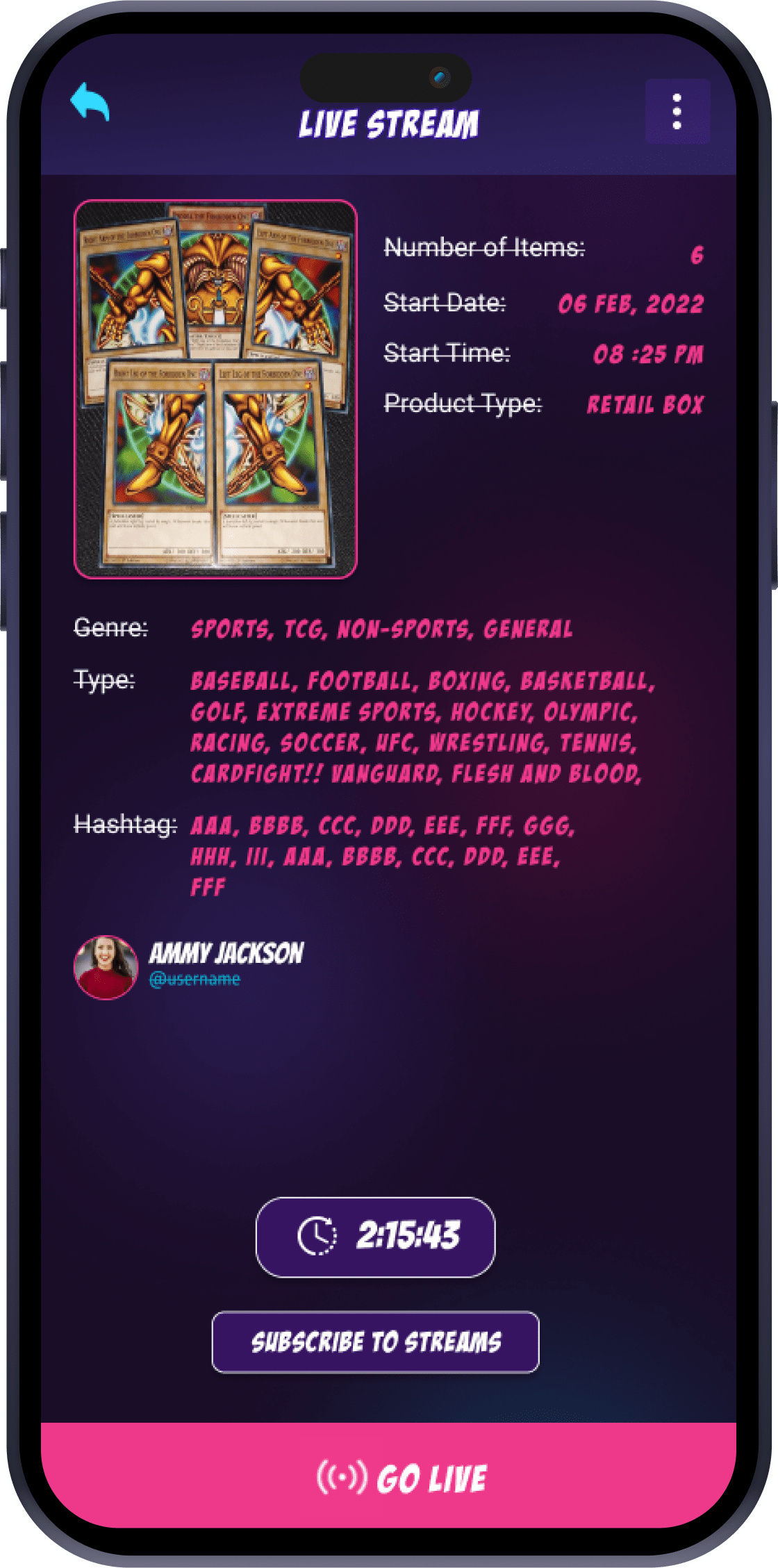 Our app unites collectors, sellers, and fans on a seamless platform, making live sports card breaks exciting, transparent, and secure for bidding, selling, and viewing.