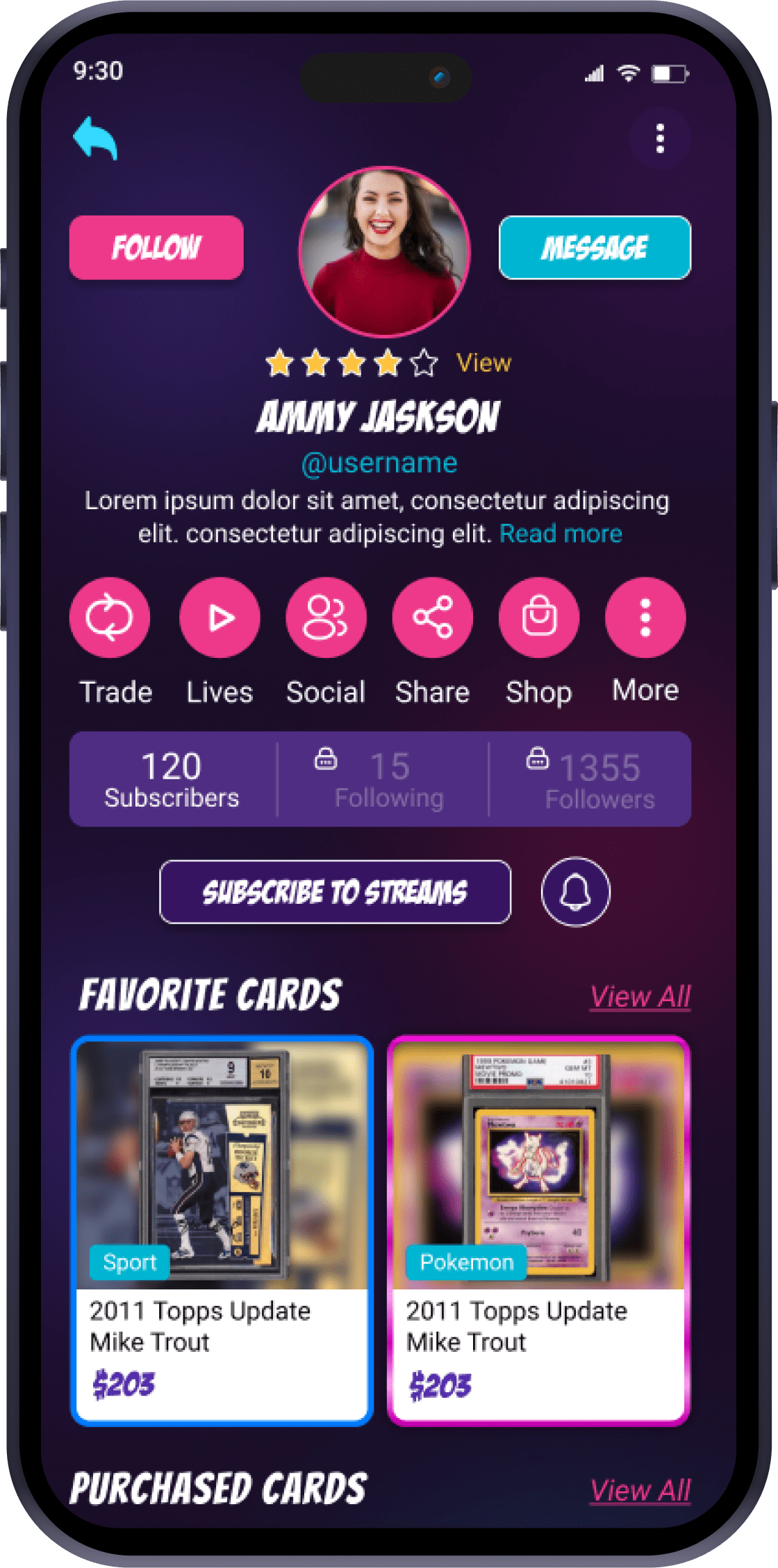 Social trading card platform developed to unite collectors, investors, and brands in one convenient place. It offers a secure, sleek marketplace for buying, selling, and grading cards, complete with live streaming auctions, randomizer breaks, and comprehensive pricing analytics. Users create personalized profiles to connect based on interests and collections, while Brand Shops empower creators to grow their business collaboratively. With a focus on safety, interaction, and nostalgia, app brings the trading card hobby into the digital age, making collecting more fun, secure, and profitable than ever before.