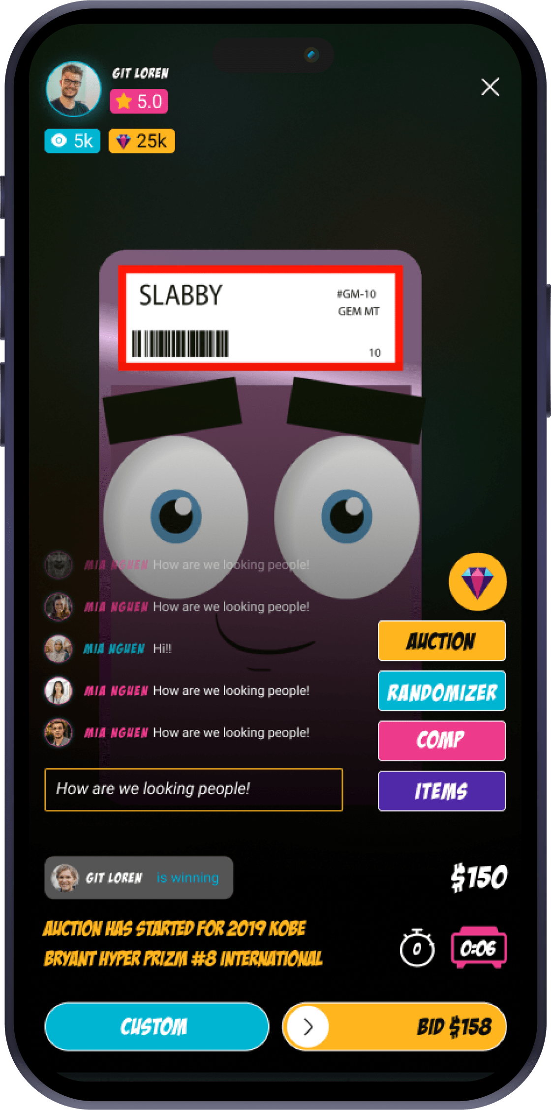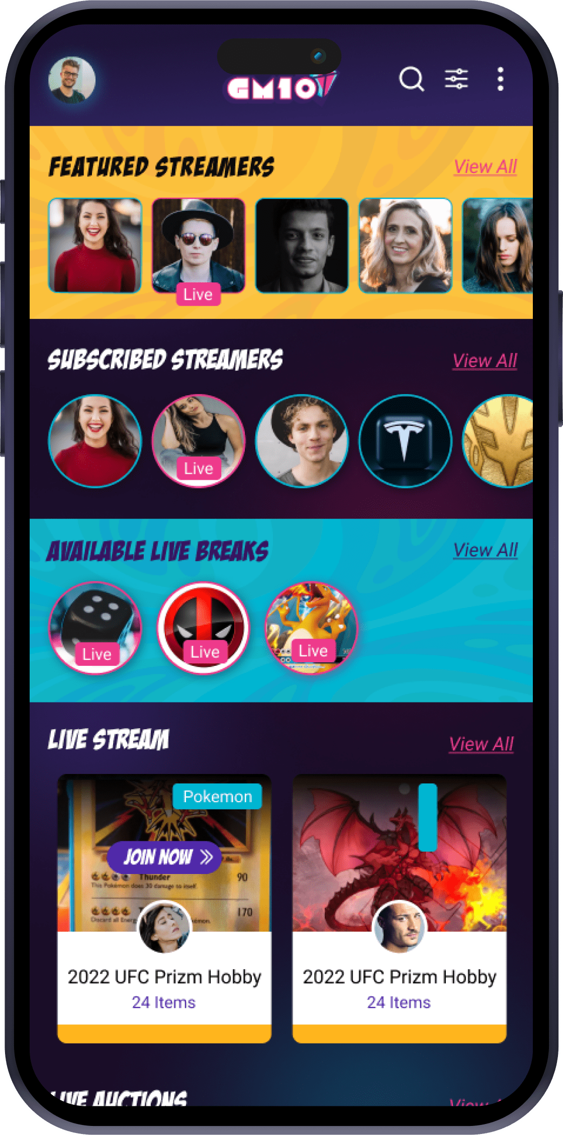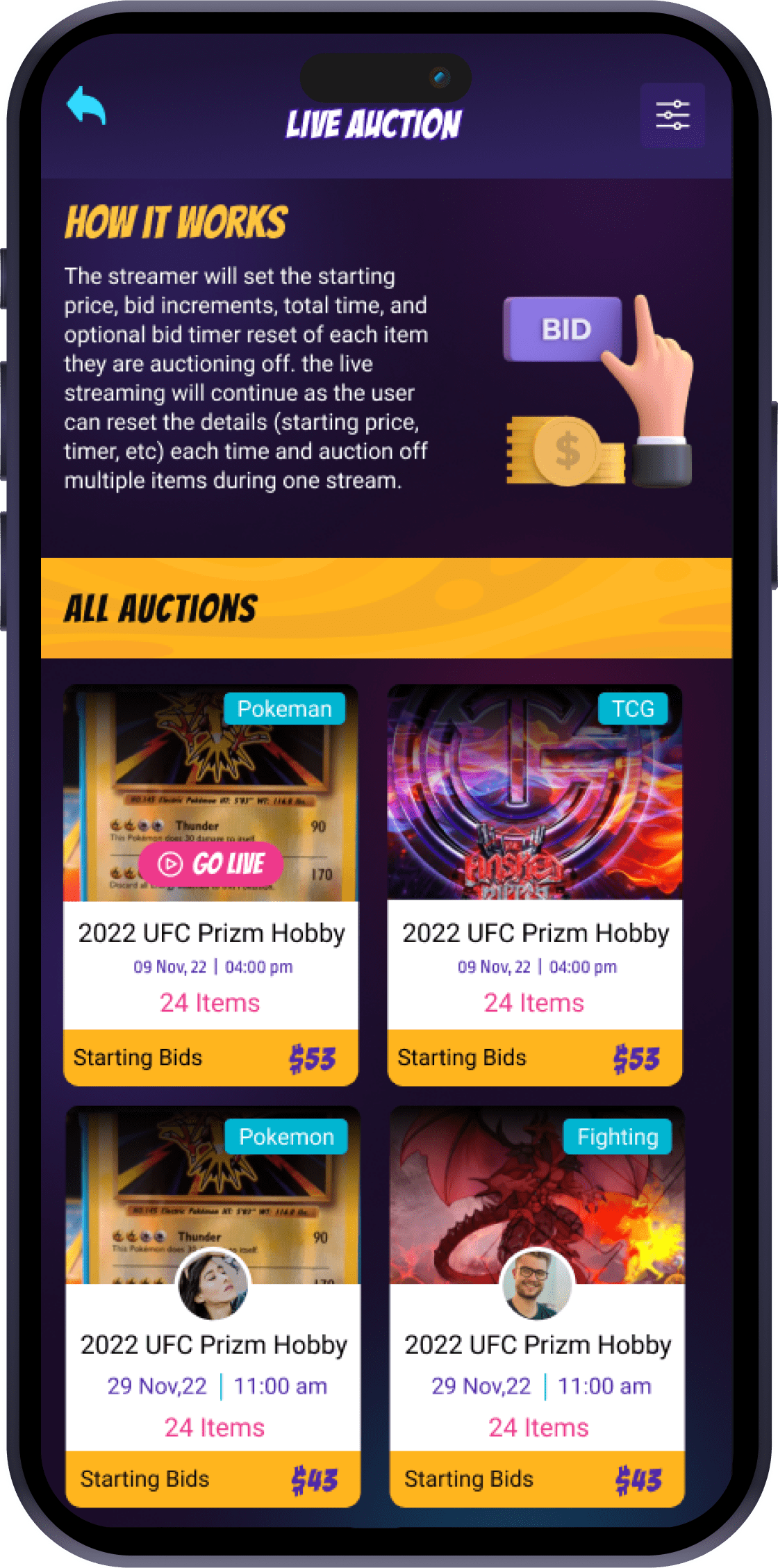 Our app unites collectors, sellers, and fans on a seamless platform, making live sports card breaks exciting, transparent, and secure for bidding, selling, and viewing.